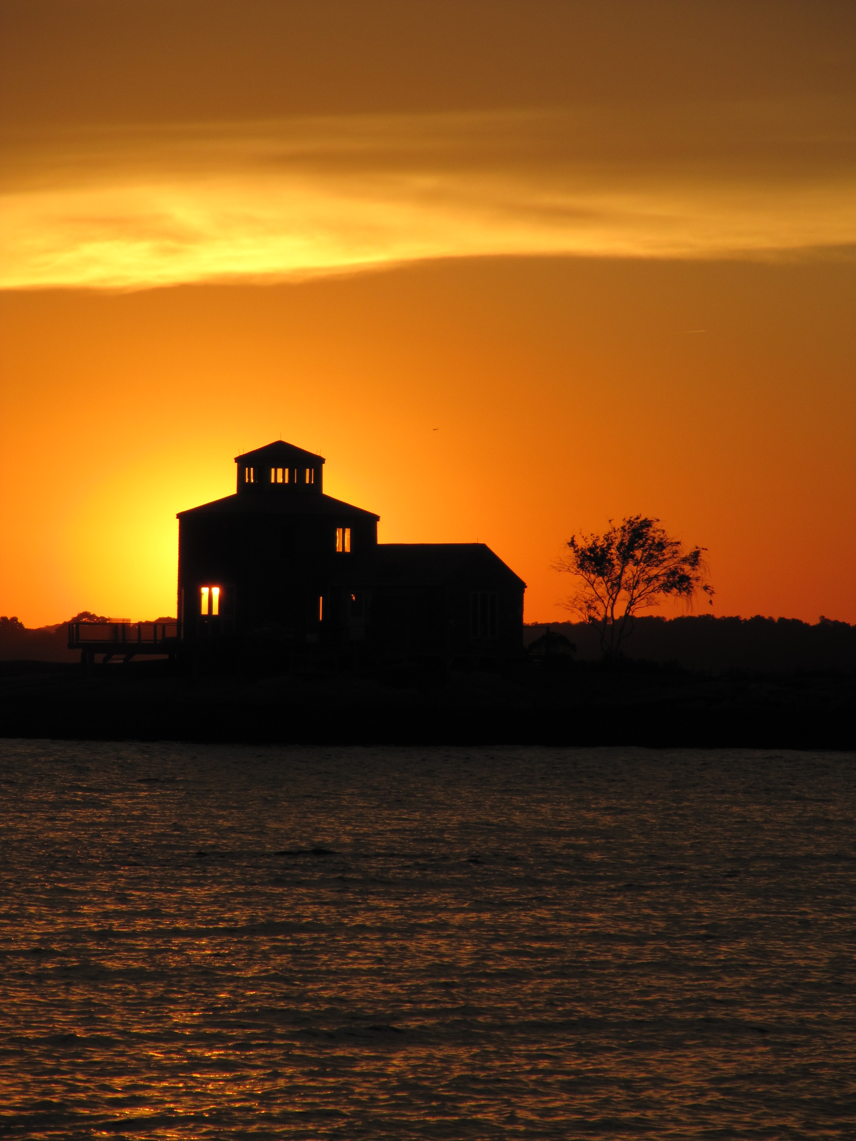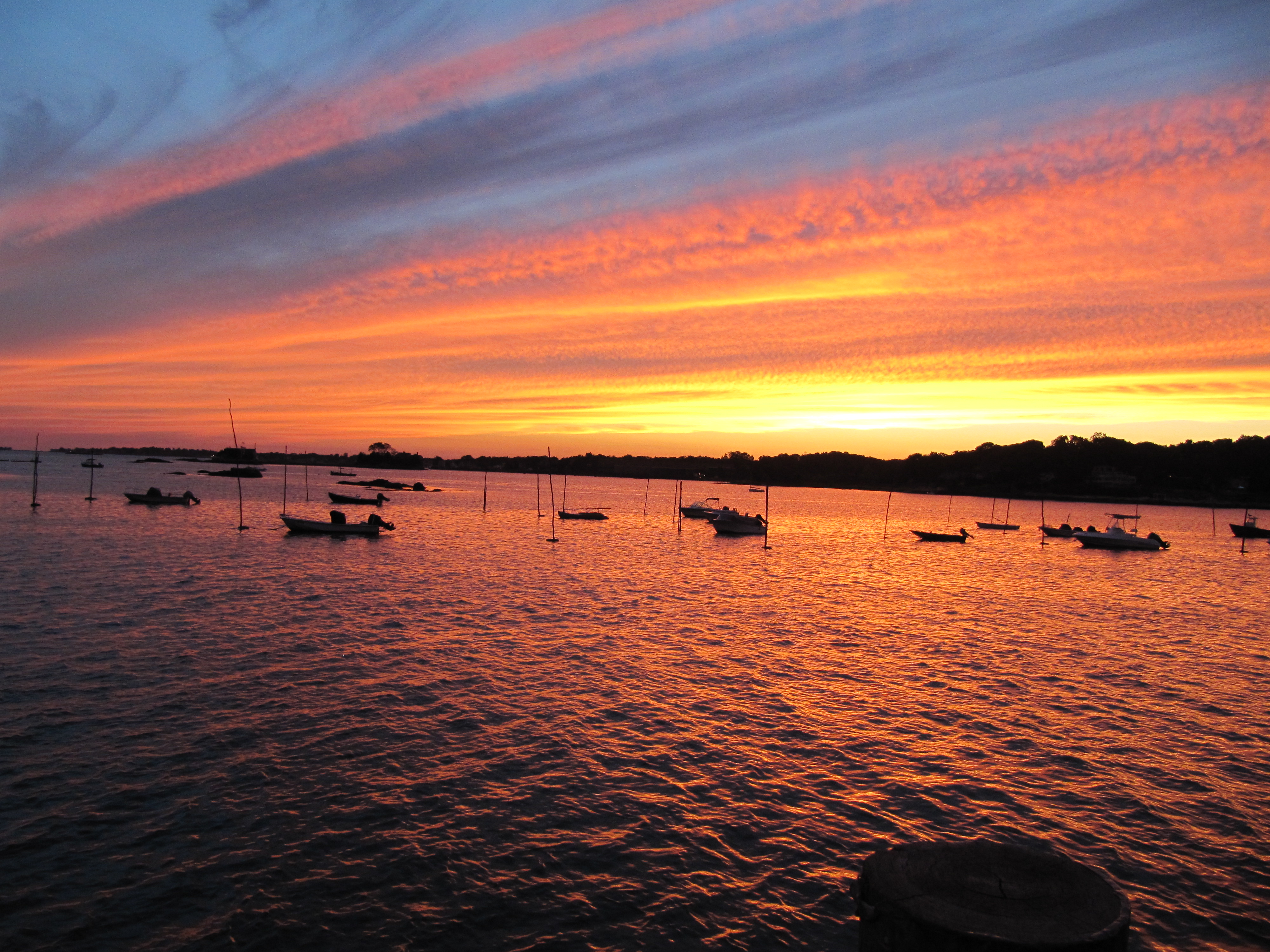 The sunsets posted here depict just such a voyage. Their drama was captured by my friend, Margot, while she was enjoying an evening cruise with friends around the tiny Thimble Islands in the waters of Long Island Sound. It was a milestone celebration, marking her successful completion of a long and arduous journey through the treatment protocol for lung cancer.