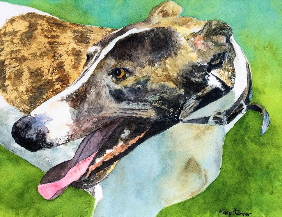 Casey — Watercolor pet portrait by Mary O’Connor © 2017 To see more of Mary’s Pet Portraits, visit her painting gallery here.