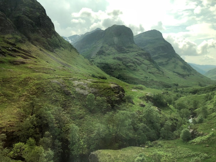 A view of the Jacobite steam train crossing the Glenfinnan Viaduct gave us pause on our way to the infamous Glencoe area.