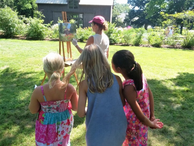 Aubrey, Ava and Olivia enjoy a summer afternoon watching an artist transform the gardens of the Florence Griswold Museum into a work of art. The three had just completed a tour of Miss Florence’s house, getting a taste of life experienced by members of the turn-of-the-century Lyme Art Colony.
