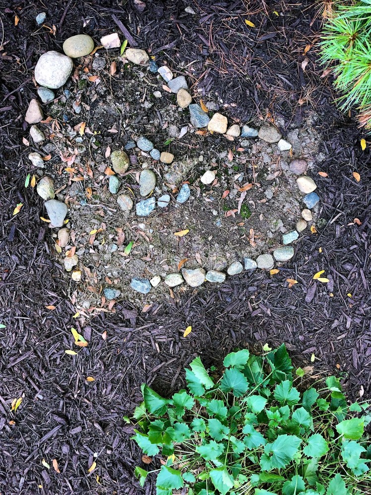 It took a bit of sleuthing to figure out just who was behind this tiny oasis of love, but Olivia’s little stone heart signature served as a strong clue. It will remain there even when buried beneath winter’s snow, warming my days with kindness paid forward!