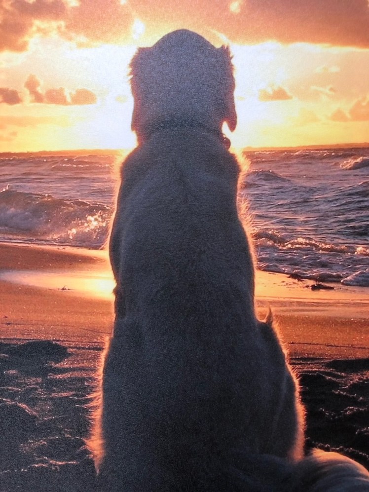 “The sun ignites the clouds below it as if they, and the water, itself, were on fire.”