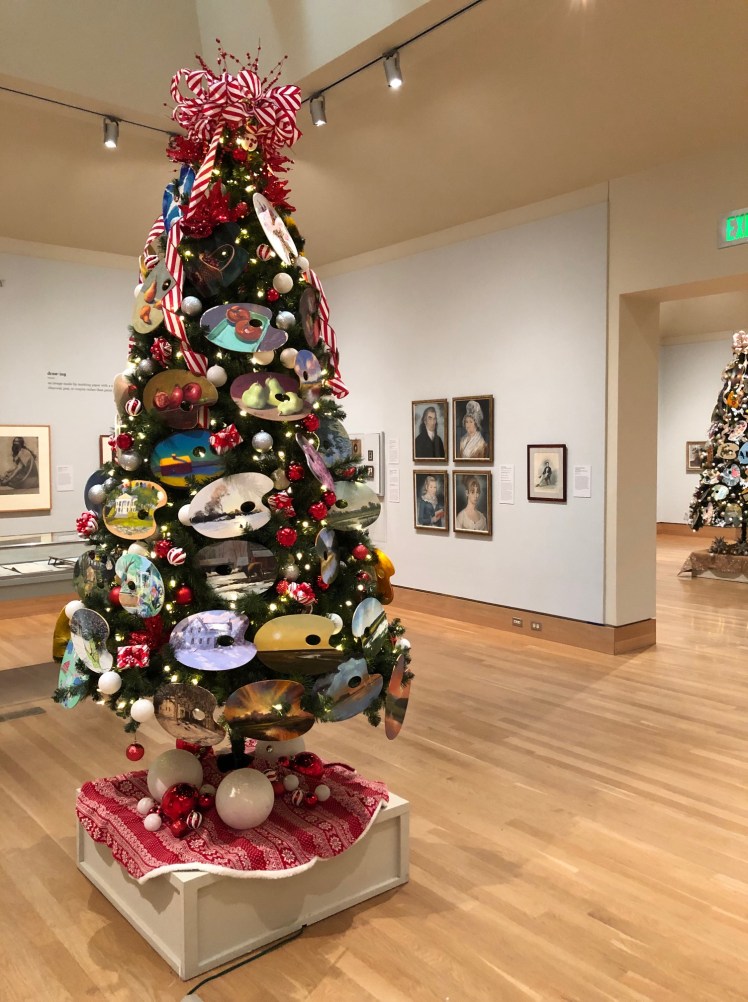 For the past fifteen years, visitors to the Florence Griswold Museum in Old Lyme, Conn., have admired the painted palettes by contemporary artists hung on Miss Florence’s Artist Trees. Alluding to the Lyme Art Colony artists’ tradition of painting on the Griswold house wall and door panels, the nearly 200 palettes by today’s artists fill three fantasy trees as the centerpiece of the museum’s Magic of Christmas celebration.