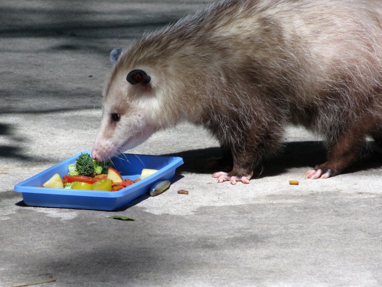 Rescued Opossum enjoys dinner at Flamingo Gardens and Wildlife Sanctuary, Davie, Florida. — Photo by Mary O’Connor