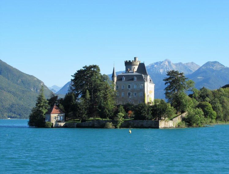 The tiny artificial island with the romantic name of Île des Cynes (Island of Swans), sits just offshore in the waters of Lac d’Annecy, known as Europe’s cleanest lake.