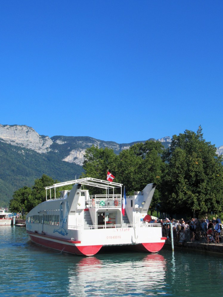 “Being on a boat that’s moving through the water, it’s so clear. Everything falls into place in terms of what’s important and what’s not.” — James Taylor ~ Joining the floating balls and diving birds, we boarded one of the popular tour boats for a cruise around the 24-mile perimeter of Lac d’Annecy.