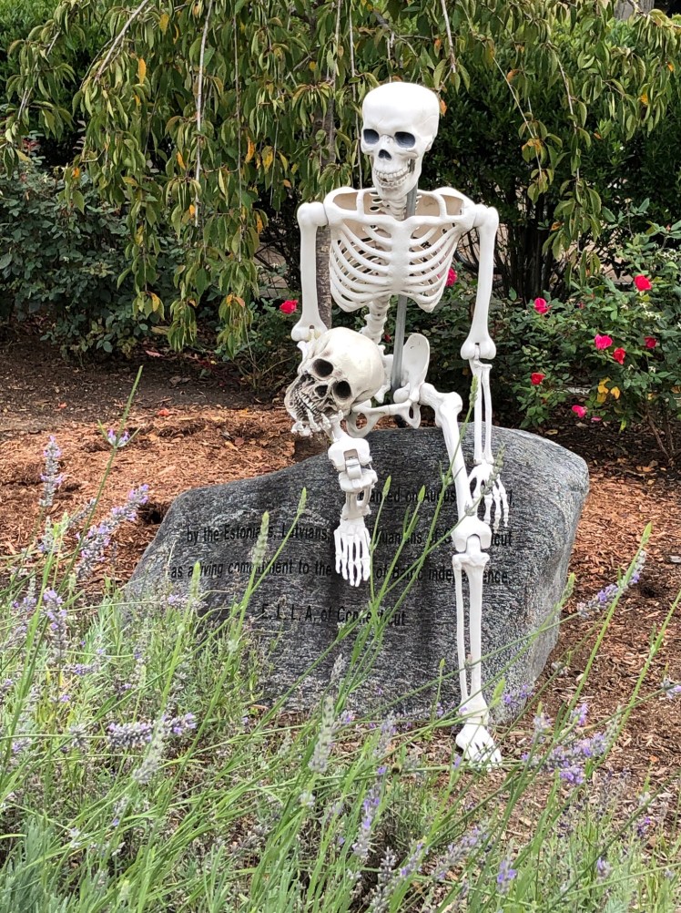 The skeletons are out for Halloween. ~ Photo at Elizabeth Park, West Hartford, Conn., by Mary O’Connor