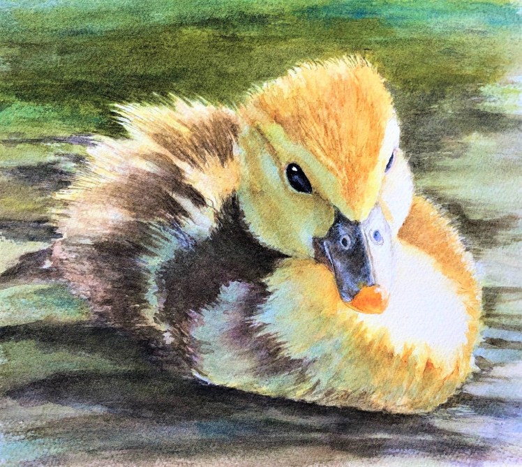 Fluffy duck ~ Watercolor painting by Mary O’Connor