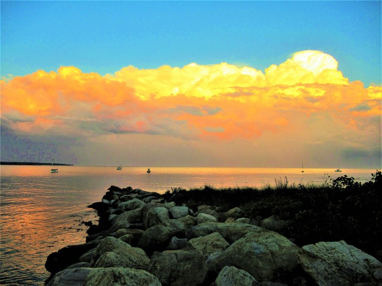Day Is Done ~ Golden sunset, Niantic Conn. photo by Jan Logozzo • “Looking Forward” haiku poem by Mary O’Connor
