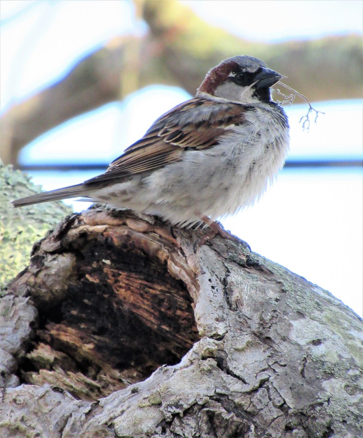 Lining of Twigs ~ Tiny House Sparrow builds new home • Photo by Jan Logozzo • “Tapestry’ haiku by Mary O’Connor