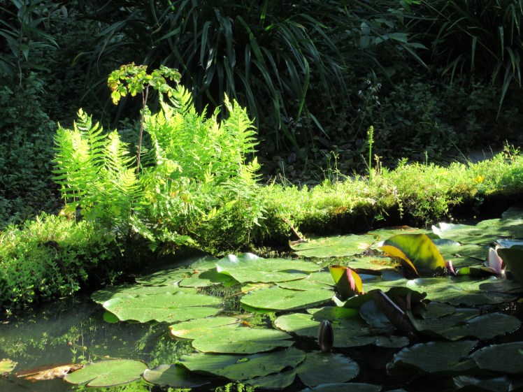 In the Light of Day ~ Ferns and Lily pads have stories to tell • Photo and “Shadows” haiku poem by Mary O’Connor