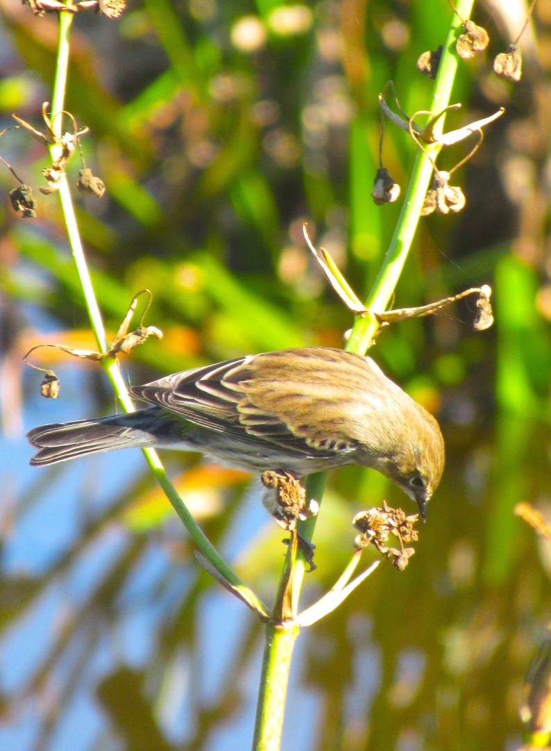 Choice Meal ~ Yellow-rumped Warbler enjoys low-hanging fruit • Photo by Jan Logozzo • “Refreshment” haiku poem by Mary O’Connor
