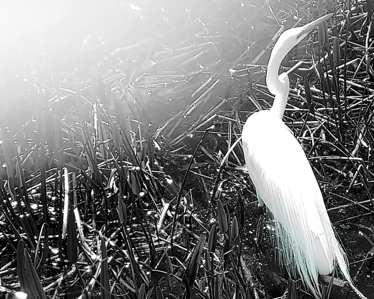 Exposed ~ Unsurpassed in beauty, Great White Egret displays pure white plumage • Photo at Wakodahatchee Wetlands, Delray, Fla. by Jan Logozzo • “Exposed” haiku by Mary O’Connor