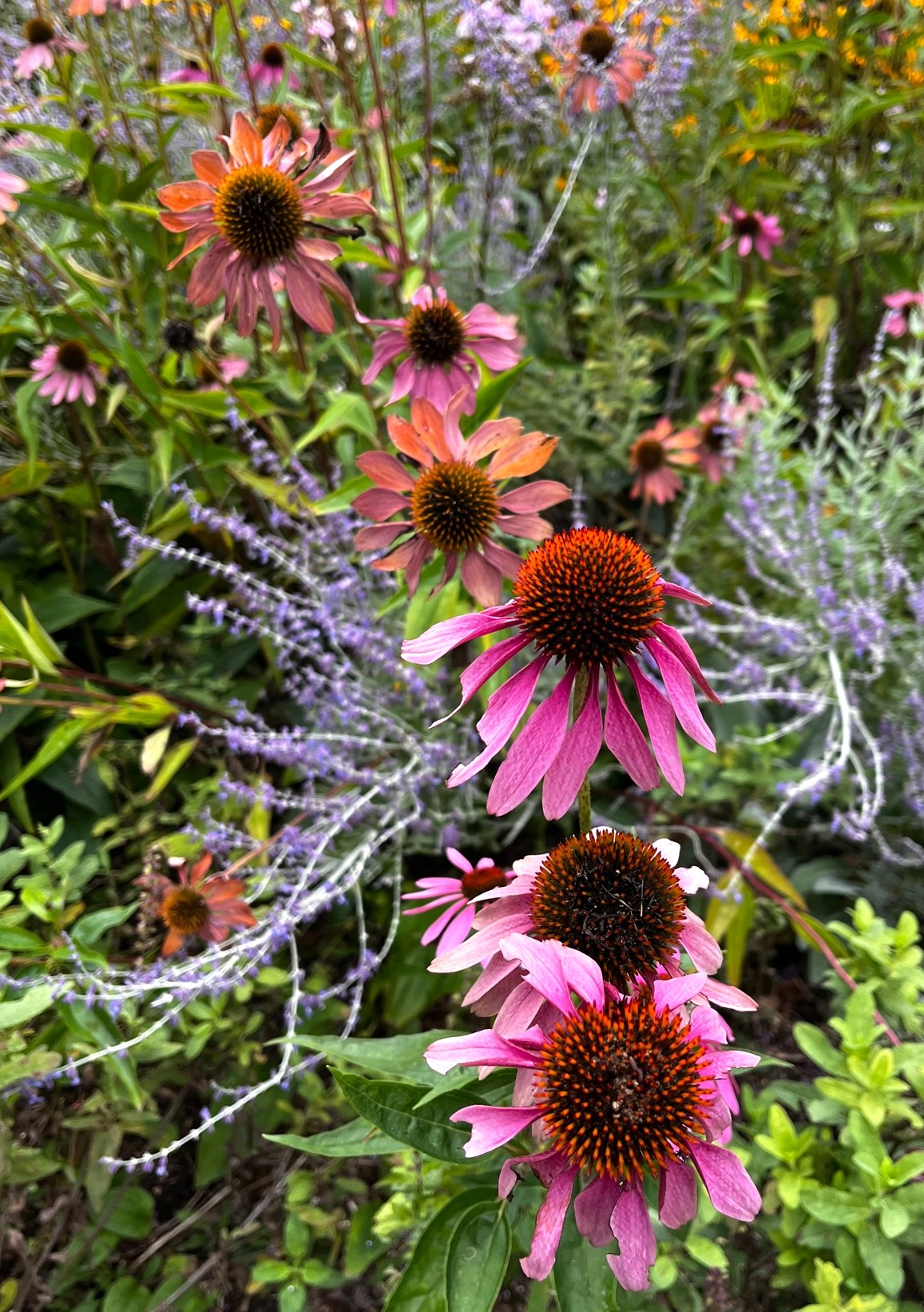 On Last Legs ~ Spent Cone Flowers call it a day • Blog post with Florence Griswold Museum garden photo and “Worn Out” haiku by Mary O’Connor