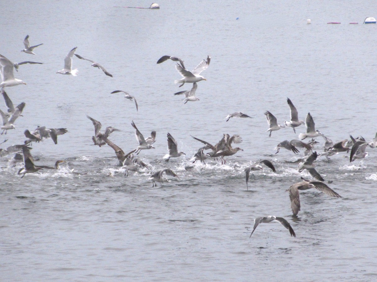 Feeding Frenzy ~ Gulls jostle for fish • Photo by Jan Logozzo • Blog post with “Frenzy” haiku by Mary O’Connor