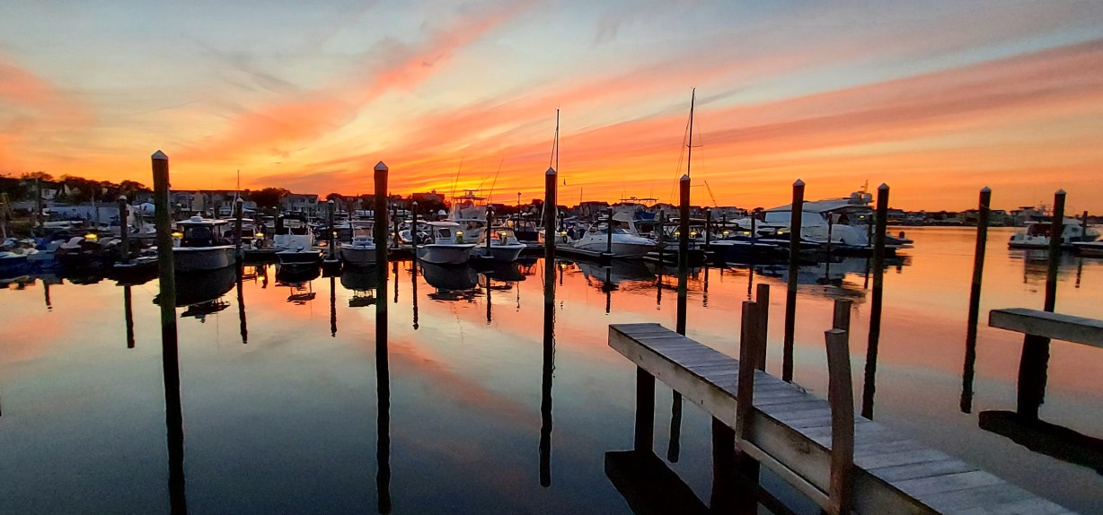 Shrewsbury River Sunset ~ Boats at rest as sun says Good Night • Photo by Jan Logozzo • Blog post and “Day Is Done” haiku by Mary O’Connor