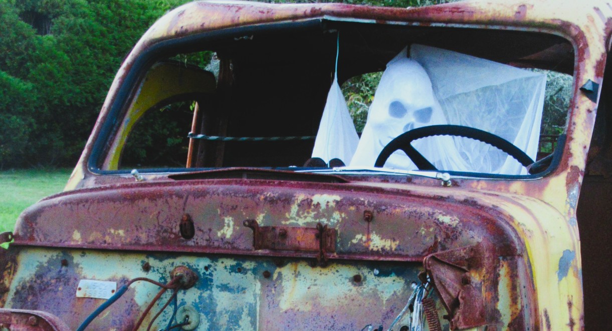 Scary Guest ~ Jalopy Driver • Photo by Jan Logozzo • “Haunted” haiku and blog post by Mary O’Connor