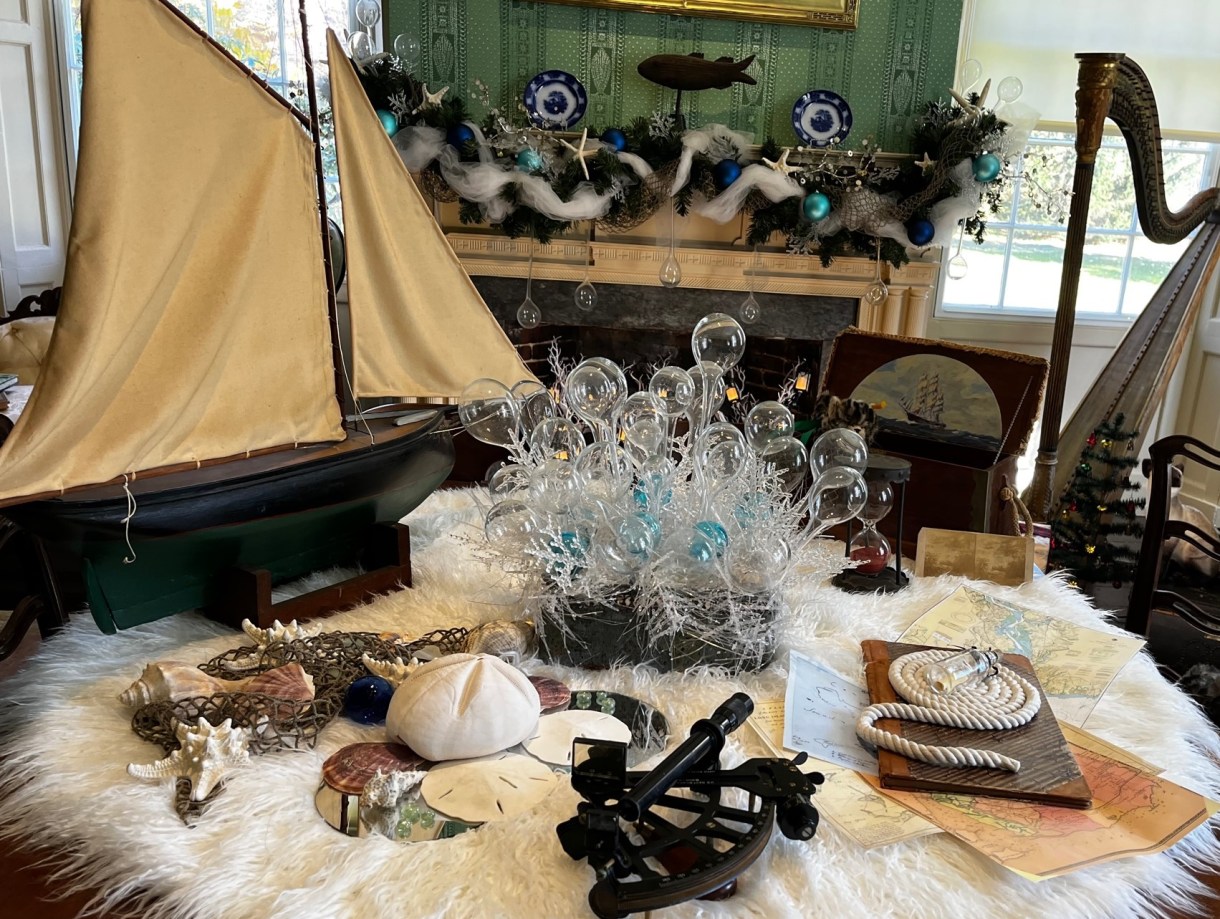 Storyteller Tales ~ Travel memories trapped in voyage keepsakes • “Storyteller” haiku, post and Florence Griswold Museum holiday display photo by Mary O’Connor