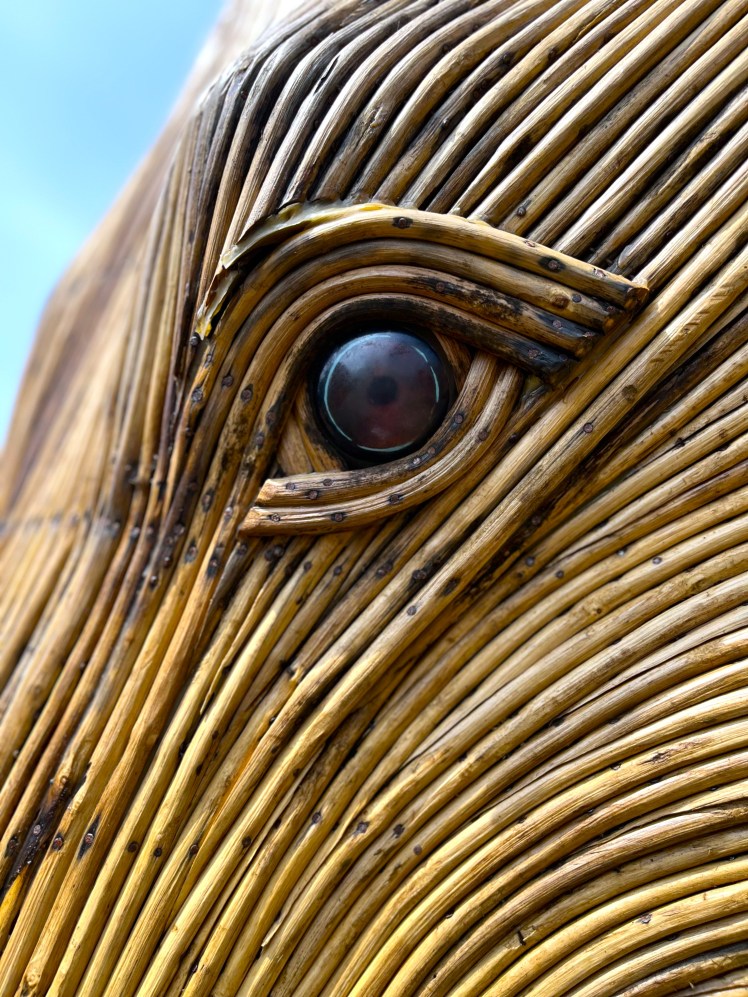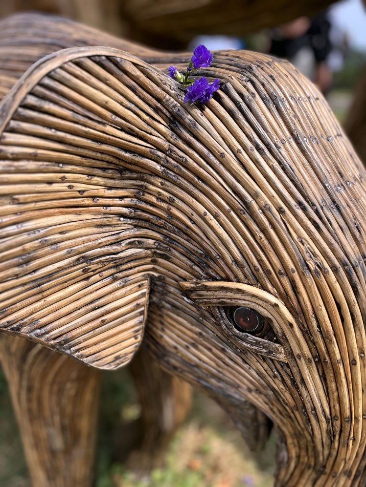 Each sculpture crafted from the invasive lantana weed is designed to match a real elephant. Even the eyes are hand-painted to match the exact eye-color of the elephant being re-created.