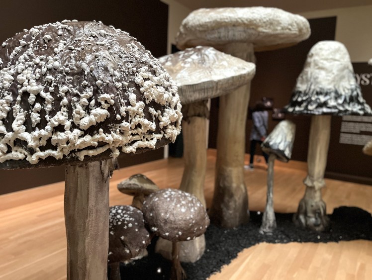 An “Enchanted Environment” awaits visitors to the Mystical Murmurs installation at Florence Griswold Museum in Old Lyme, CT. Artist and photographer Adrian Broom draws on medieval European folk beliefs and invites guests to step inside an oversized faerie ring of mushrooms and, in so doing, trigger songs and hidden sounds of nature • Photos and “Enchanted” haiku by Mary O’Connor