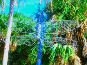 Sculpted by artist and metal fabricator, Huelani Mei, translucent wings of a dragonfly delight young and old alike with their magical charm. Crafted from powder-coated steel in a larger-than-life linework style, Forest Forms sculptures hover over the grounds of the Bonnet House • Dragonfly photo by Jan Logozzo • “Dragonfly” haiku by Mary O’Connor
