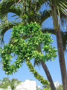 Happy St Patrick’s Day! Traditional three-leaf shamrocks swing from green palm tree fronds in celebration of the Irish feast day • Photo by Jan Logozzo