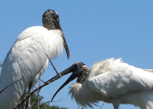 Wood Storks communicate by snapping their bills together in a loud, hard-to-ignore clacking sound • Photo at Wakodahatchee Wetlands and “Speak Up” haiku by Mary O’Connor