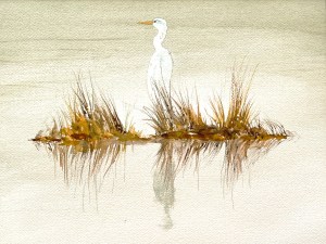 Nature, with all its stillness, well of quiet for the mind and soul • “Stillness” watercolor painting and haiku by Mary O’Connor