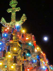 Built with lobster traps and 460 hand-painted buoys, the Stonington (CT) Lobster Trap Tree lights up the town dock in annual tribute to the local fishing industry. Recognized by the BBC as one of the world’s most amazing Christmas trees, the anchor-topped tree reaches 35 ft. into the night sky • Photos by Jan Logozzo • “Holiday Tribute” haiku by Mary O’Connor