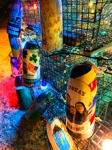 The Stonington Lobster Trap Tree features 460 buoys hand-painted by Connecticut and Rhode Island school children, businesses and artists. Designed with themes of community and fishing heritage, the buoys are being auctioned online at 32auctions.com. Proceeds support fishermen or the sponsoring Ocean Community Chamber of Commerce • Photo and “Hand-painted Heritage” haiku by Mary O’Connor
