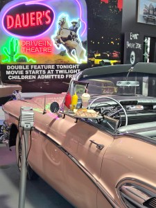 Particularly popular in the fifties and sixties, drive-in cinemas let patrons enjoy films from the comfort of their vehicle with concession stand snacks delivered to their car door • Photo and “Drive-in” haiku by Mary O’Connor (photo taken at Dauer Museum of Classic Cars, Sunrise, Florida)