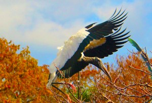 Often called “ironheads” due to their featherless heads and necks, wood storks favor cypress swamps and mangroves for nesting • Photo at Wakodahatchee Wetlands, Delray Beach, Florida by Jan Logozzo • “Deep Dive” haiku by Mary O’Connor